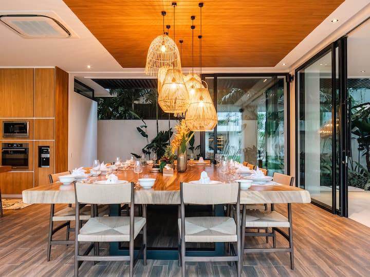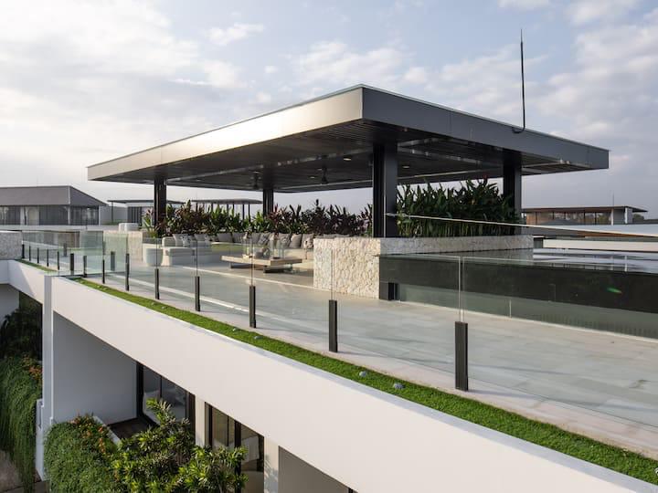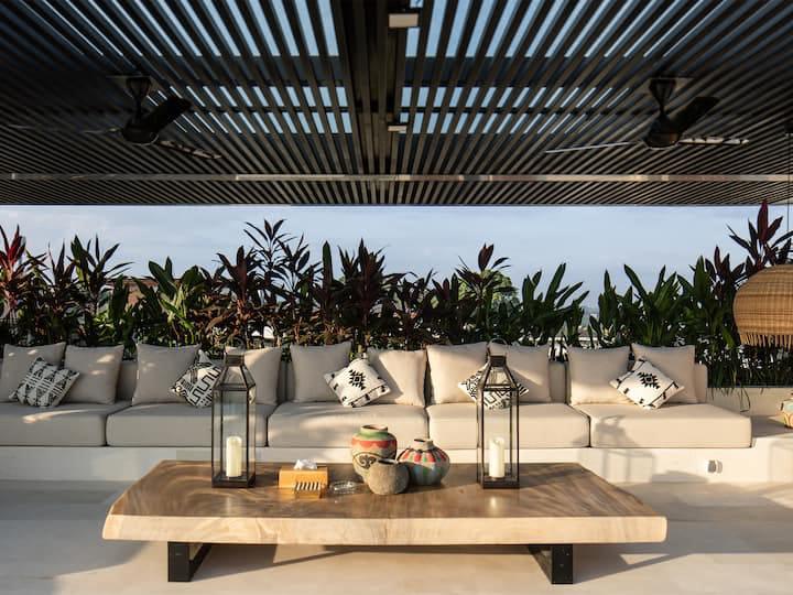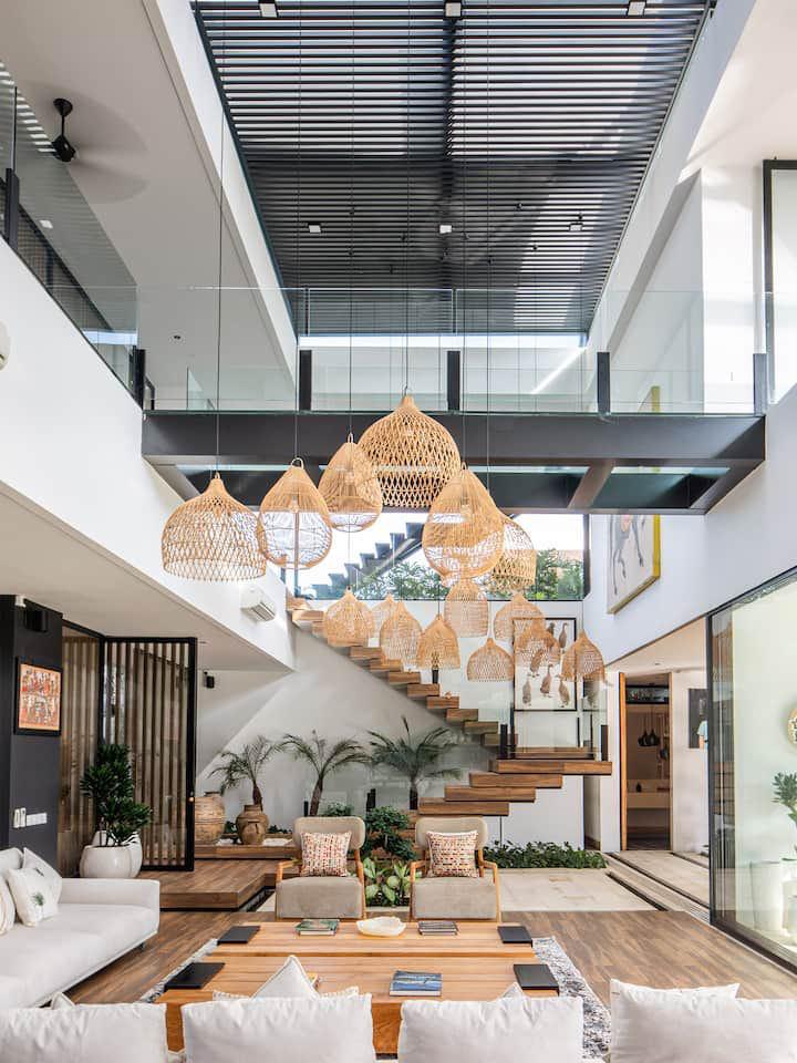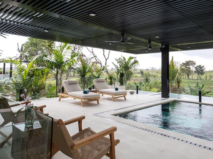 Au cœur de Pererenan, à deux pas des cafés, restos et salles de sport, la villa Solea offre une parenthèse luxueuse entre rizières et rivière. Cette villa contemporaine dispose de 6 suites spacieuses avec salles de bain privées, d’une salle a manger magestueuse. grande piscine bordée de verdure, d’un immense rooftop idéale pour des séances de yoga au sunset et de vastes espaces communs pensés pour la vie en communauté.